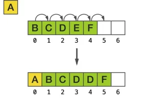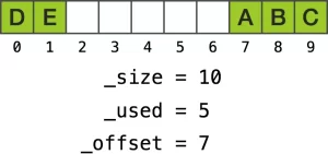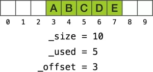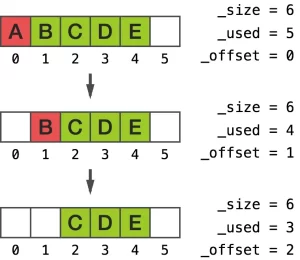 使用一段线性内存空间的一个最明显的缺点是,在下标 0 处插入一个元素时,需要移动其它所有的元素,即 memmove 的原理: